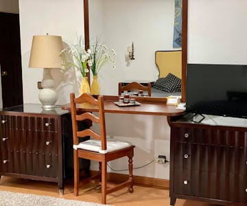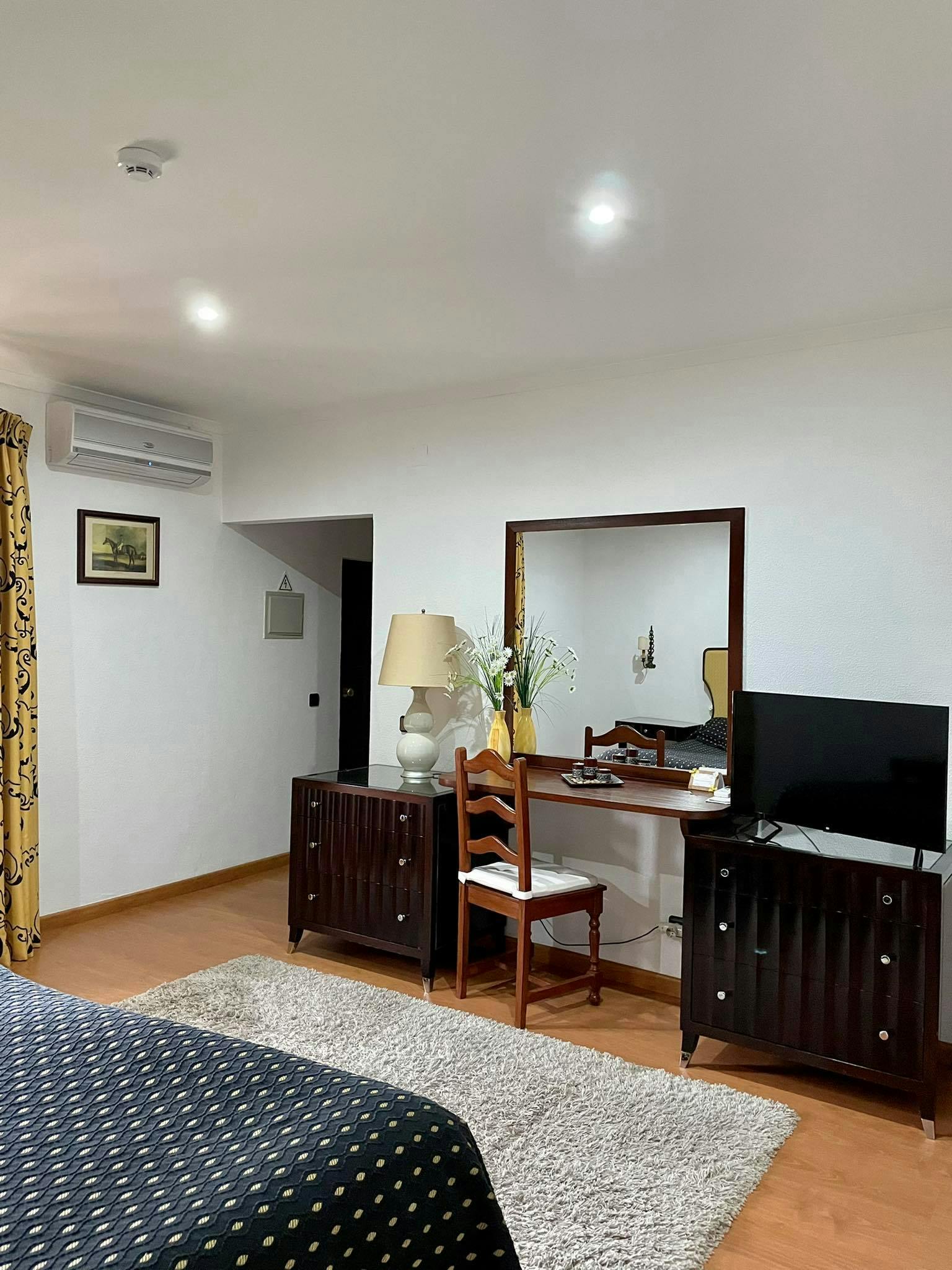 Equipada com TV por cabo e TV de ecrã plano, vem com Wi-Fi gratuito, ar condicionado e um pequeno roupeiro. Com uma área de estar e um pequeno local de trabalho, os hóspedes encontrarão o quarto ideal tanto para trabalho como para o lazer.